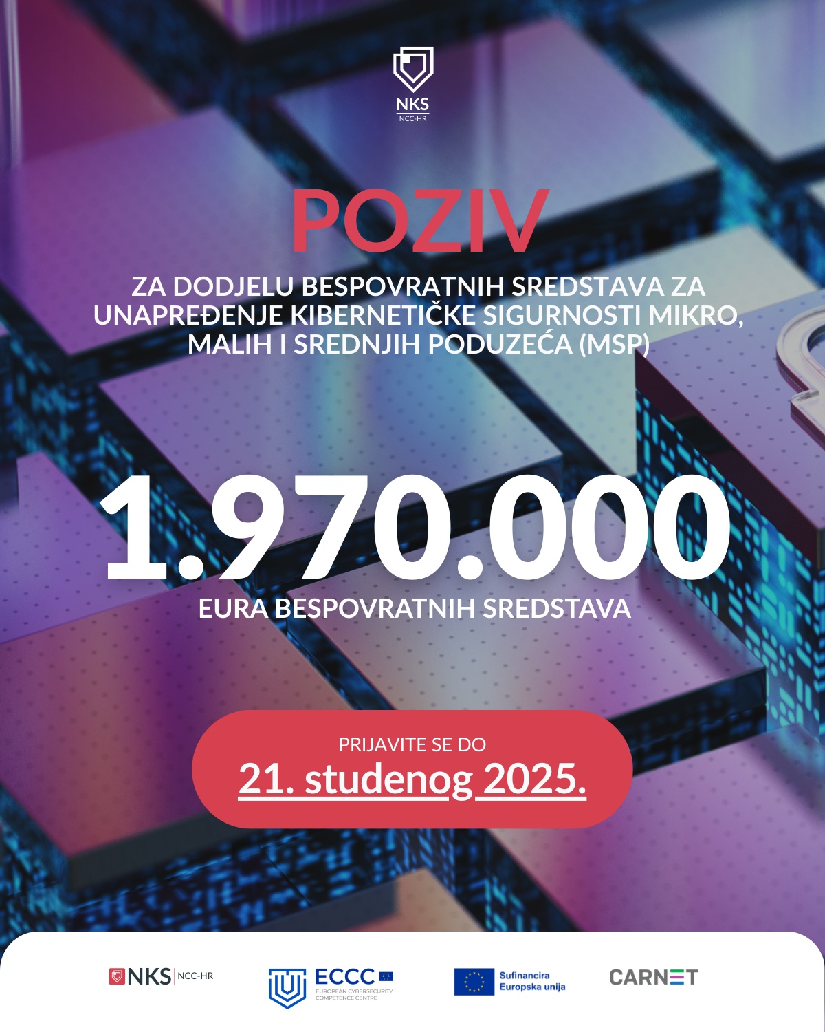 Rok za podnošenje prijava za dodjelu bespovratnih sredstava za unaprjeđenje kibernetičke sigurnosti MSP-ova istječe 21. studenoga 2025.
